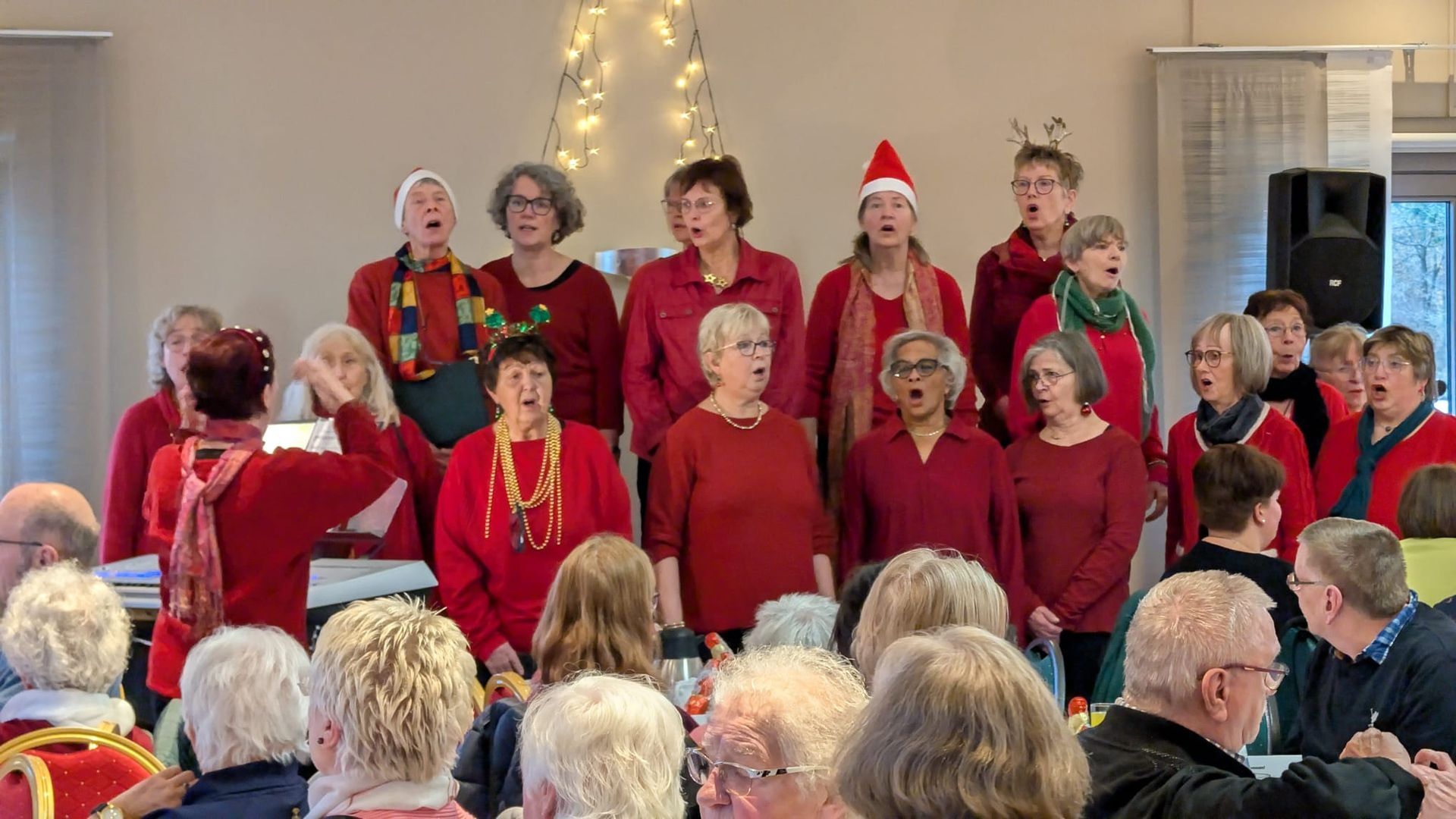 Am 06.12.2025 waren wir zur Weihnachtsfeier der AWO im Schützenhof Alzenbach eingeladen. Weihnachtlich geschmückt brachten wir nach kurzem Einsingen im vollbesetzten Saal mit sehr kleiner Bühne unsere Lieder dar.