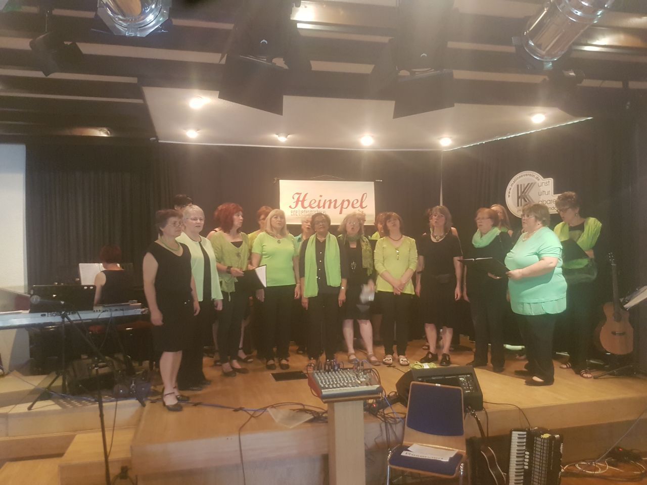 Die Gruppe Heimpel legte los mit ihren schönen Liedern. Nach der Pause kam dann unser Auftritt mit Liedern , die wir immer voller Begeisterung singen, u.a.: „Ich will keine Schokolade ...“ und „Nur nicht aus Liebe weinen...“