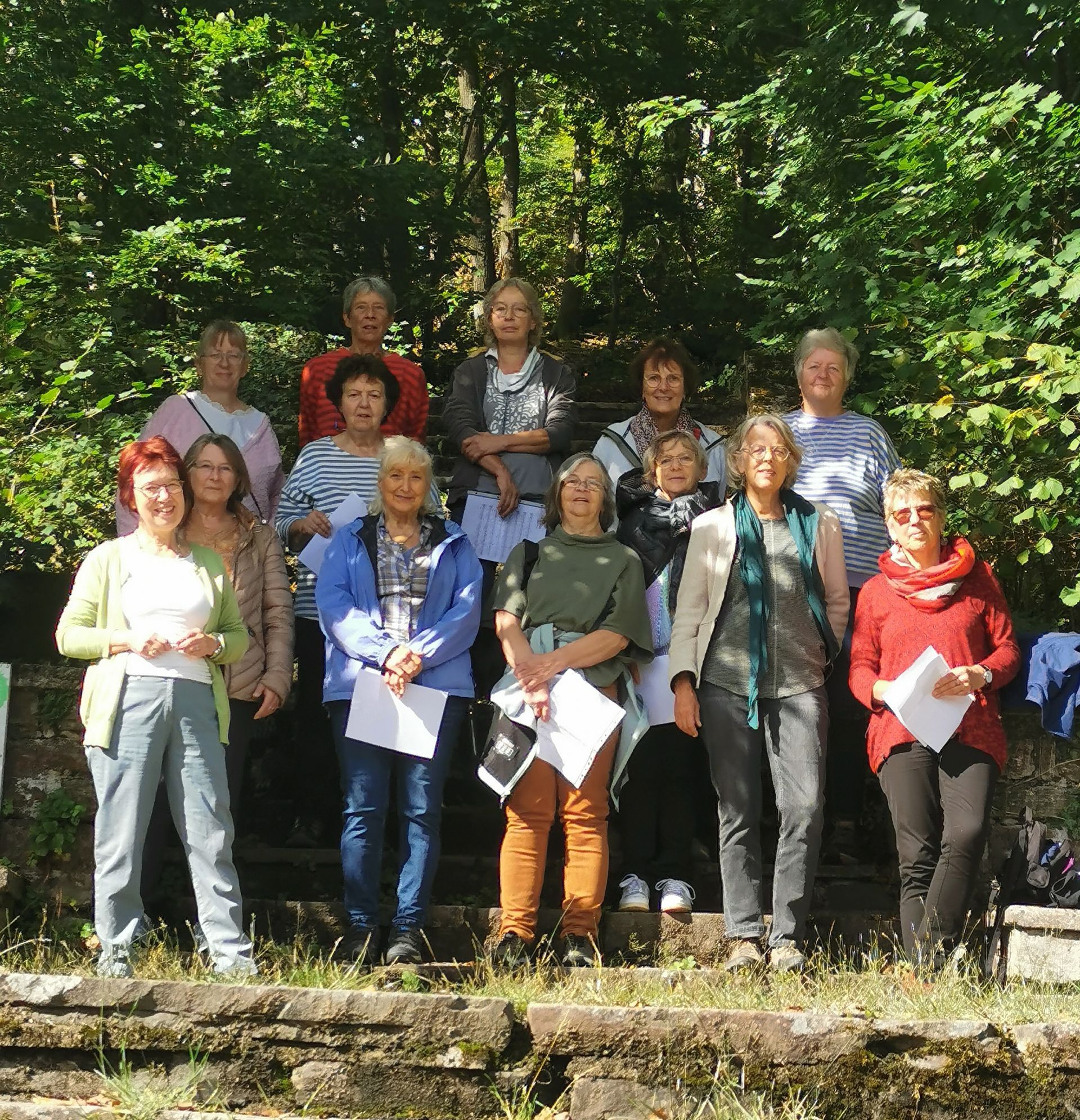 Um allen unseren Chorsängerinnen gerecht zu werden, fiel unsere diesjährige Wanderung etwas kürzer aus. Wir trafen uns am Pfarrheim und wanderten zum Herchener Thingplatz, wo wir eigentlich einen Vortrag von Herrn Dr. Weißbach hören sollten. Den hat dann kurzfristig unsere Chorfrau Ute Billesfeld übernommen, die das ganz toll und informativ gemacht hat.